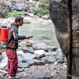 After a short speech by the IG Magic Wood, all participants poured water into bottles or other containers and headed into the forest. Since there is hardly any garbage in the forest, this year we concentrated on cleaning the boulders. As well as the weather has not invited to climb anyway, all participants have made huge amounts of boulders clean.